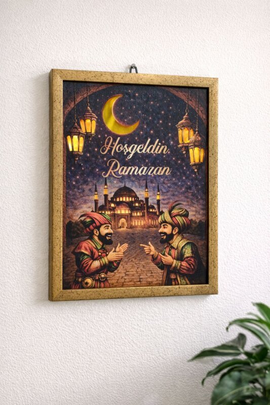 Işıklı Ahşap Pano Hoşgeldin Ramazan 33*43