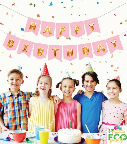 Eco Zarflı Banner Happy Birtday Pembe Gold