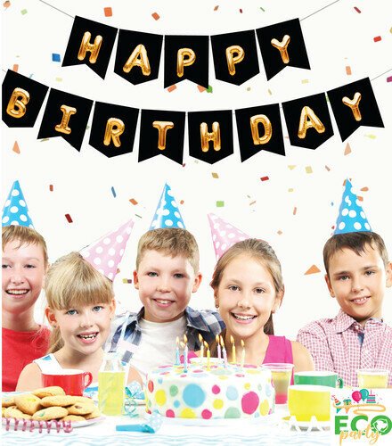 Eco Zarflı Banner Happy Birtday Siyah Gold