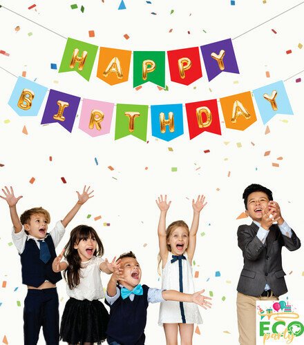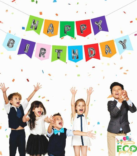 Eco Zarflı Banner Happy Birtday Renkli Gümüş