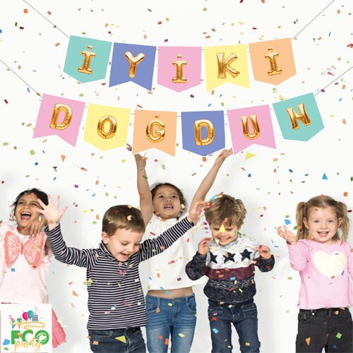 Eco Zarflı Banner Iyi Ki Doğdun Macaron Gold