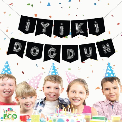 Eco Zarflı Banner Iyi Ki Doğdun Siyah Gümüş