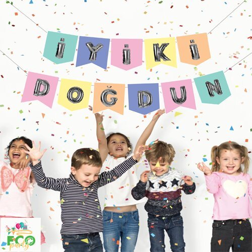 Eco Zarflı Banner Iyi Ki Doğdun Macaron Gümüş