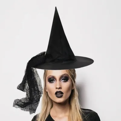 Tüllü Tokalı Cadı Şapka