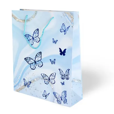 26×32 Lüks Karton Çanta Varak Baskılı -Kelebek Temalı