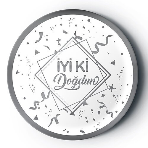 8’Li Karton Tabak Silver Yaldızlı Iyi Ki Doğdun Beyaz
