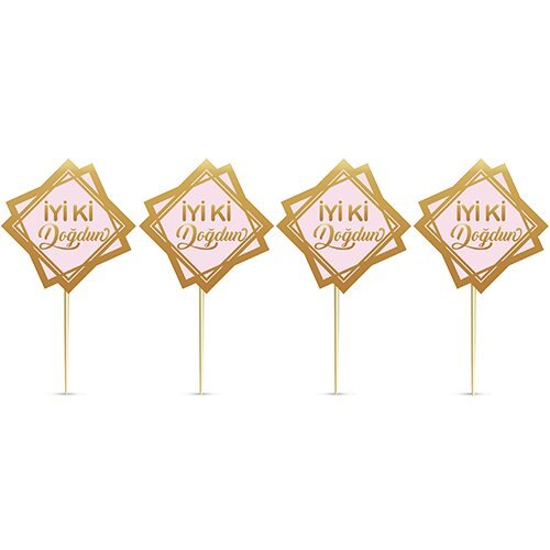8’Li Kürdan Gold Yaldızlı Iyi Ki Doğdun Pembe