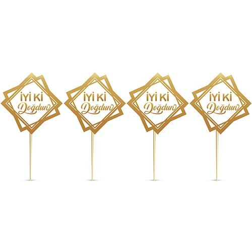 Alm-2412-028 Happy Bırthday Krom Gold Pasta Üzeri Çubuklu Kürdan