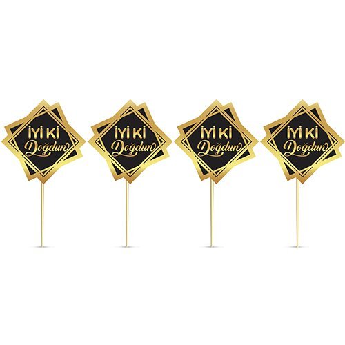 8’Li Kürdan Gold Yaldızlı Iyi Ki Doğdun Siyah