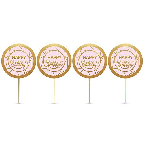 Alm-2412-028 Happy Bırthday Krom Roze Gold Pasta Üzeri Çubuklu Kürdan