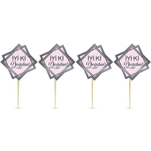 8’Li Kürdan Silver Yaldızlı Iyi Ki Doğdun Pembe