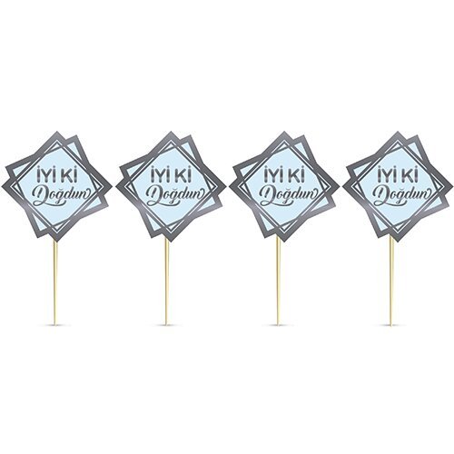 8’Li Kürdan Silver Yaldızlı Iyi Ki Doğdun Mavi