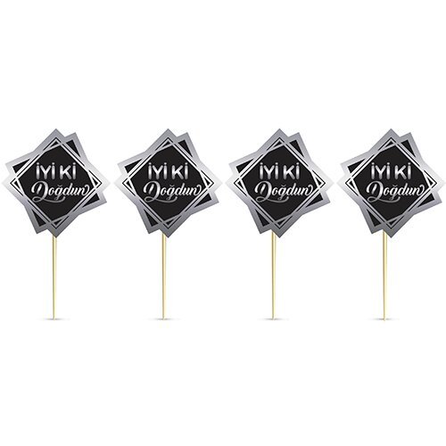 8’Li Kürdan Silver Yaldızlı Iyi Ki Doğdun Siyah