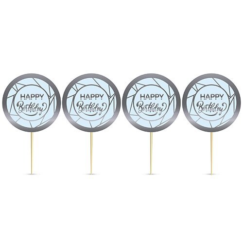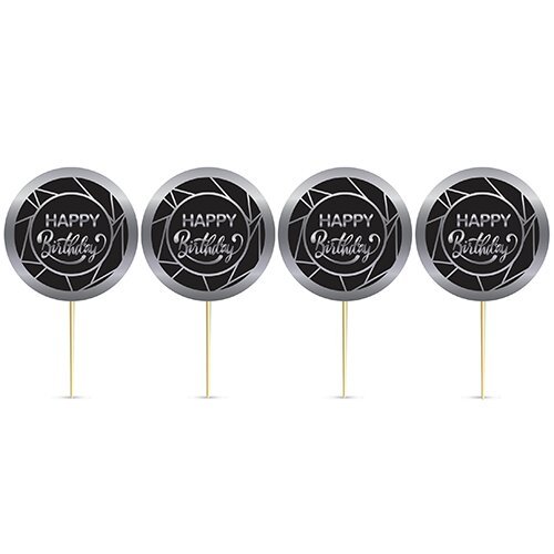Alm-2412-028 Happy Bırthday Krom Silver Pasta Üzeri Çubuklu Kürdan
