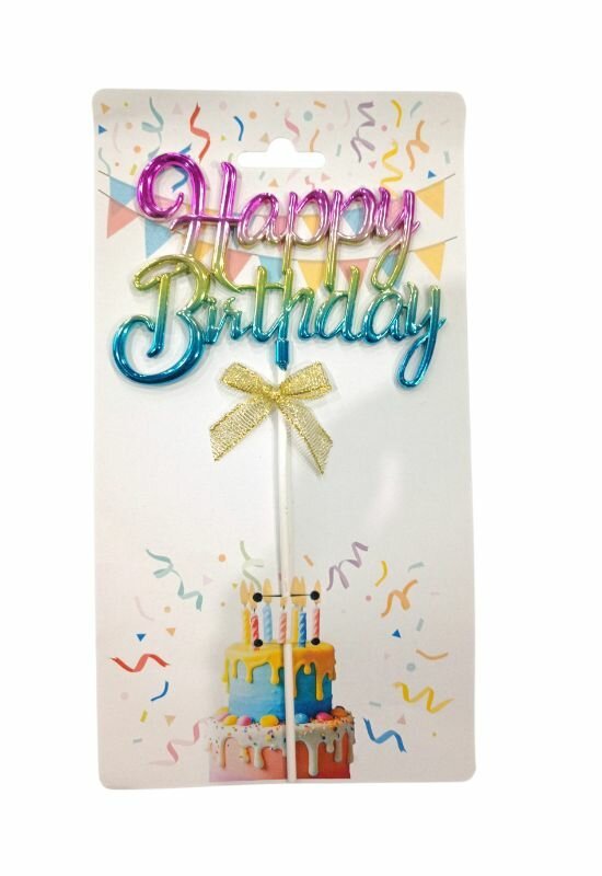 Alm-2412-025A Happy Bırthday Krom Renkli Pasta Üzeri Çubuklu Kürdan