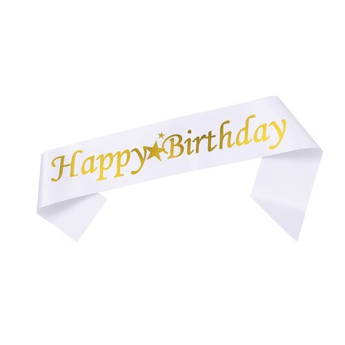 Alm2303-14 Kuşak Beyaz Happy Bırthday Gold