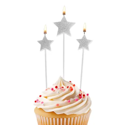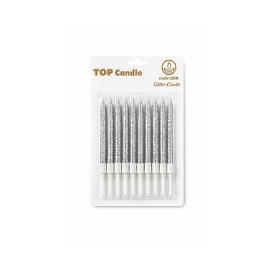 Gümüş Simli Pasta Mumu Seti 12 Parça