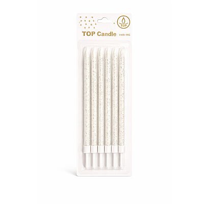 Gümüş Simli Beyaz Pasta Mumu Seti 6 Parça