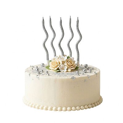 Gümüş Simli Kıvrımlı Doğum Günü Pasta Mumu