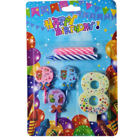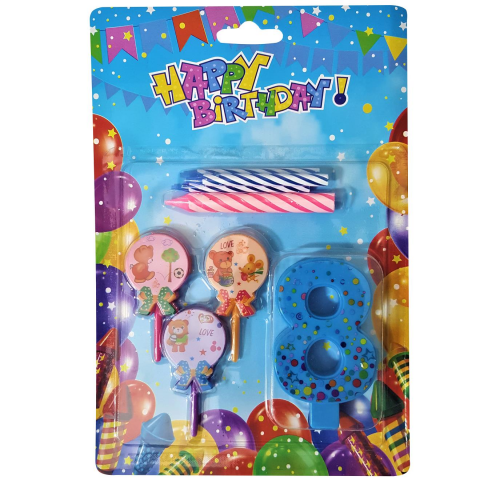 Ayıcıklı Mavi 8 Rakam Mum