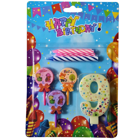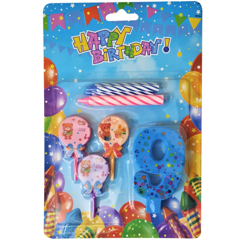 Ayıcıklı Mavi 9 Rakam Mum