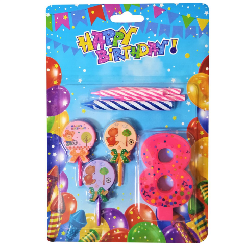 Ayıcıklı Pembe 8 Rakam Mum