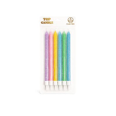Karışık Renkli Makaron Simli Pasta Mumu Seti 6 Parça