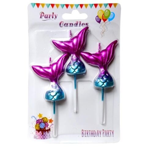 Küçük 3 Lü Çubuklu Deniz Kızı Kuyruğu Figürlü Mum