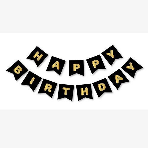 Siyah Gold Happy Yaldızlı Banner