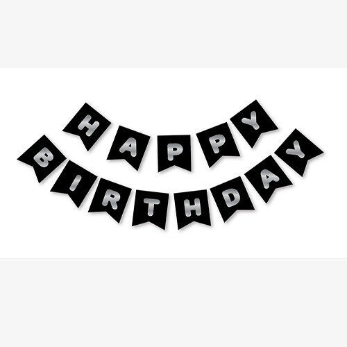Siyah Silver Happy Yaldızlı Banner