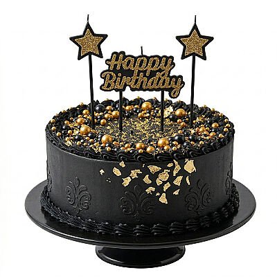 Siyah Parıltılı Doğum Günü Mum Seti – Happy Birthday Ve 2 Adet Yıldız Mum