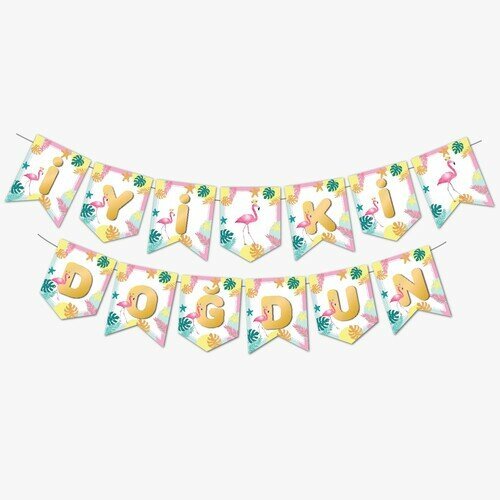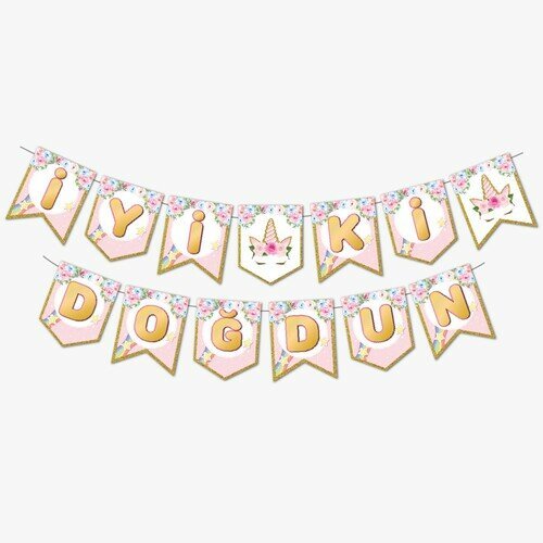Zikzak Banner Çiçekli Unicorn Iyiki Doğdun